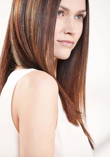 It works with any hair colour, and allows us to create an endless amount of shades. Dull, one dimensional hair colour transforms into a shiny, glossy head of hair that is full of light and vibrancy. This sheer hair colour is luminous in every single kind of light.
